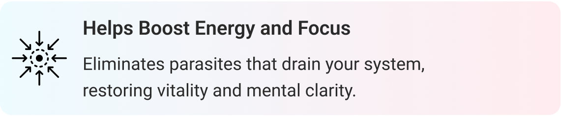 'The inclusion of pharmaceutical-grade ingredients like ivermectin in ParaPurge is noteworthy.These compounds have well-documented eficacy against various parasites. Patients have reported enhanced vitality and mental clarity post-cleansing, suggesting its potential as a supportive therapy in managing parasitic infections.